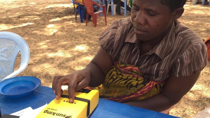 Designing a high tech product offering for a low tech operational environment with illiterate users requires excellent design. The Angaza keycode is entered into the connected devices through a few entry keys and feedback is provided via blinking LEDs. A simple user interface simplifies installation and reduces training requirements. The Angaza keycode: